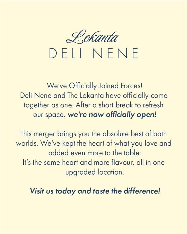 With a new and homely atmosphere we hope you will visit Deli Nene to enjoy the creations of a team of dedicated restaurant experts. Welcome to the new generation.